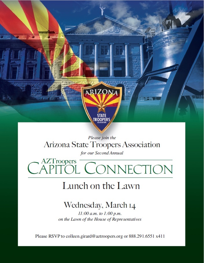 On Wednesday, March 14th, 2018, AZTroopers will be hosting an event on the lawn of the Arizona House of Representatives. The event, billed as AZTroopers Capitol Connection, will allow members of AZTroopers as well as supporters of the association to engage with Arizona Legislators.